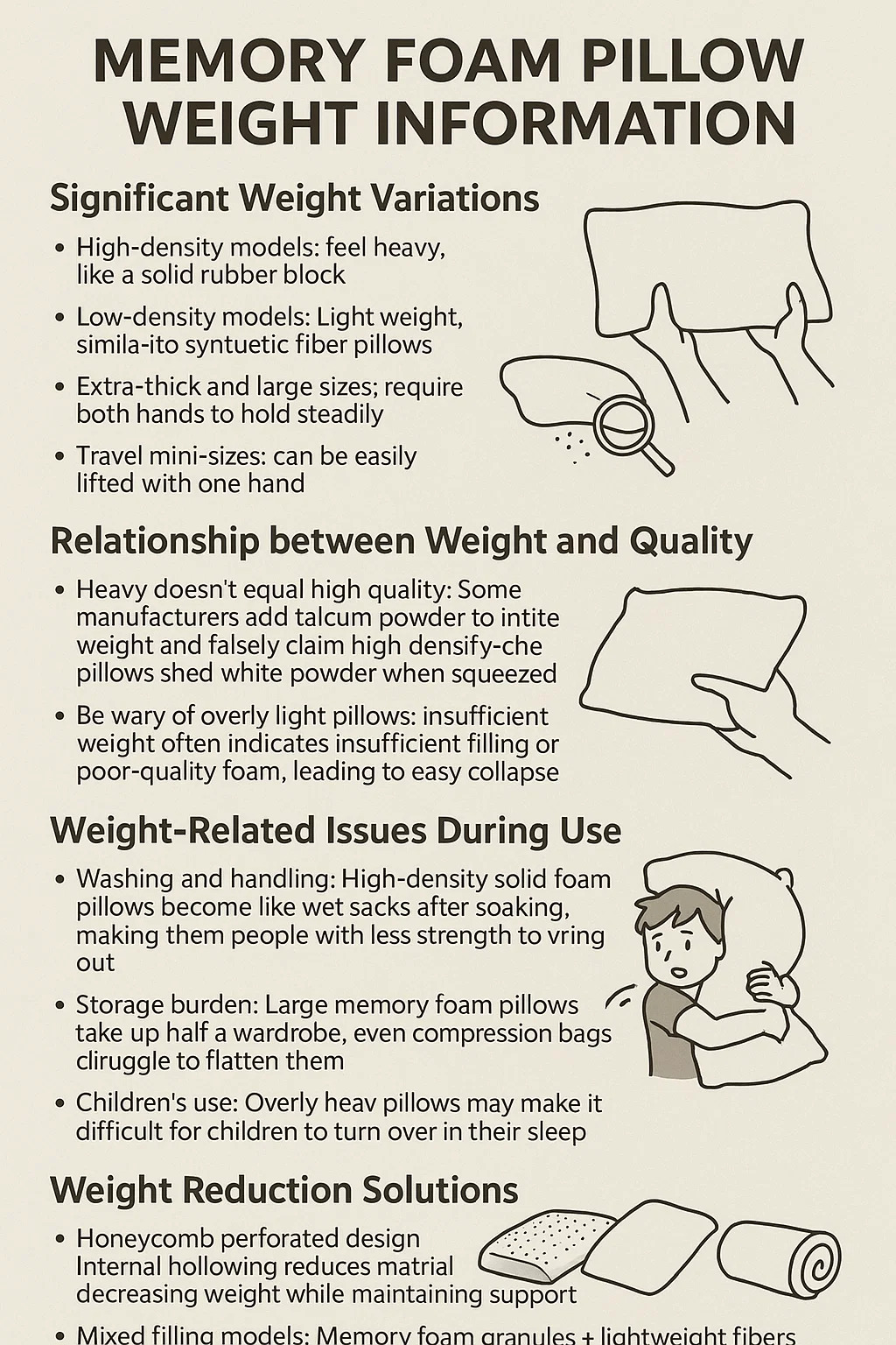Tenha cuidado com travesseiros excessivamente leves: peso insuficiente geralmente indica enchimento insuficiente ou espuma de baixa qualidade, levando ao colapso fácil.