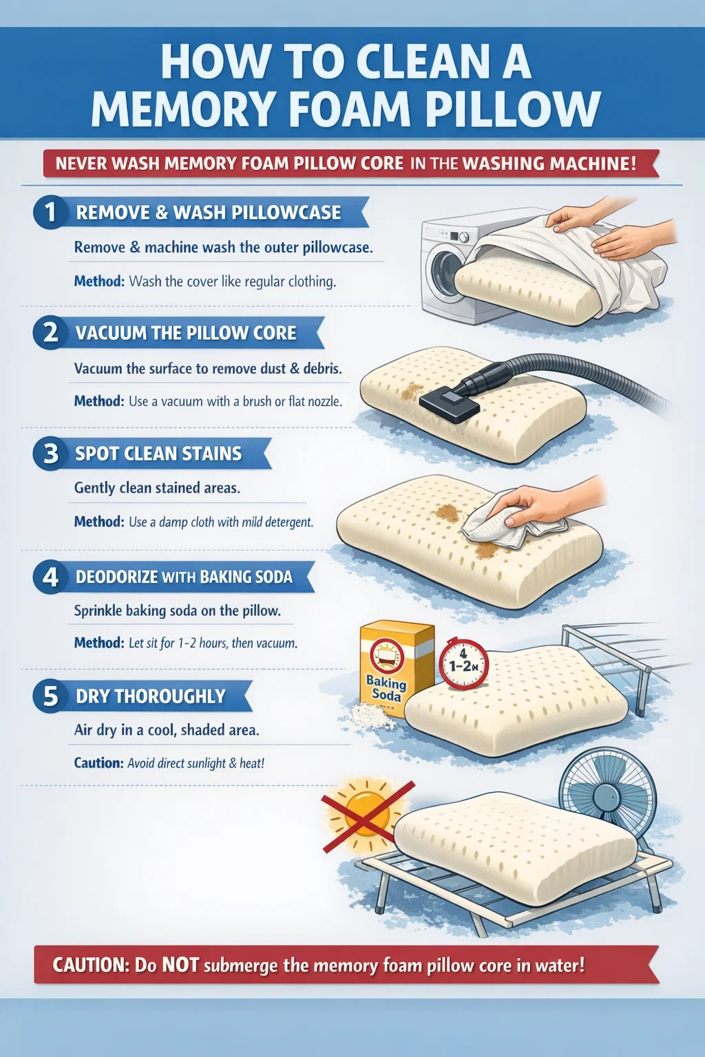 Embora o “núcleo do travesseiro” não possa ser lavado na máquina, você pode limpar seu travesseiro de espuma viscoelástica com segurança seguindo as seguintes etapas: