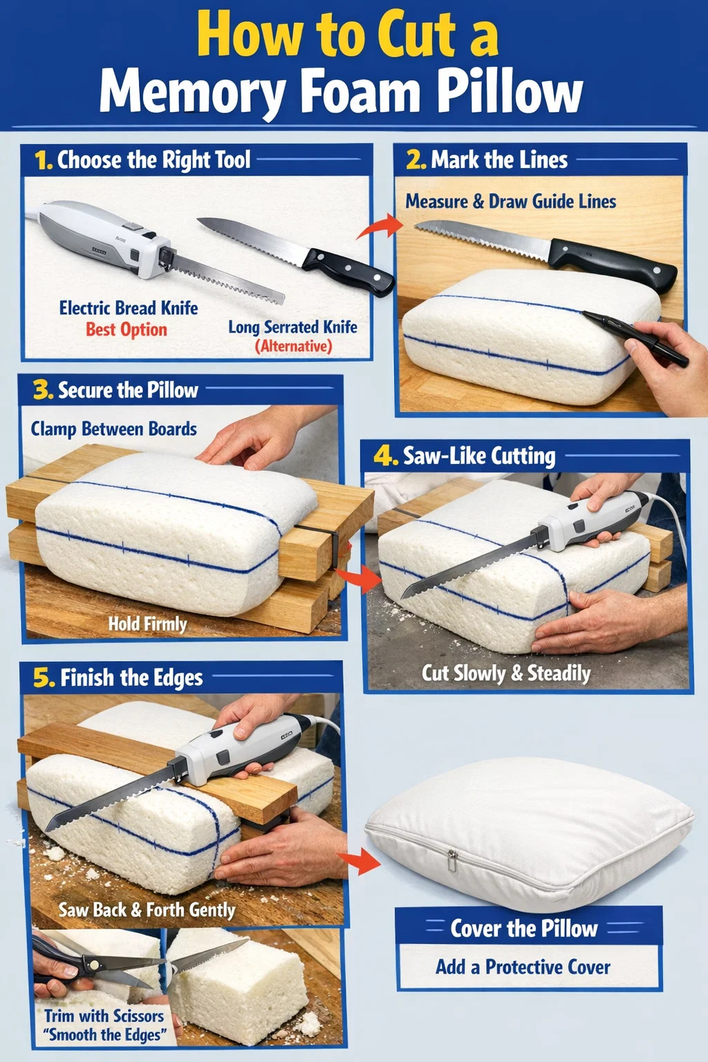 Etapas específicas para cortar um travesseiro de espuma viscoelástica: